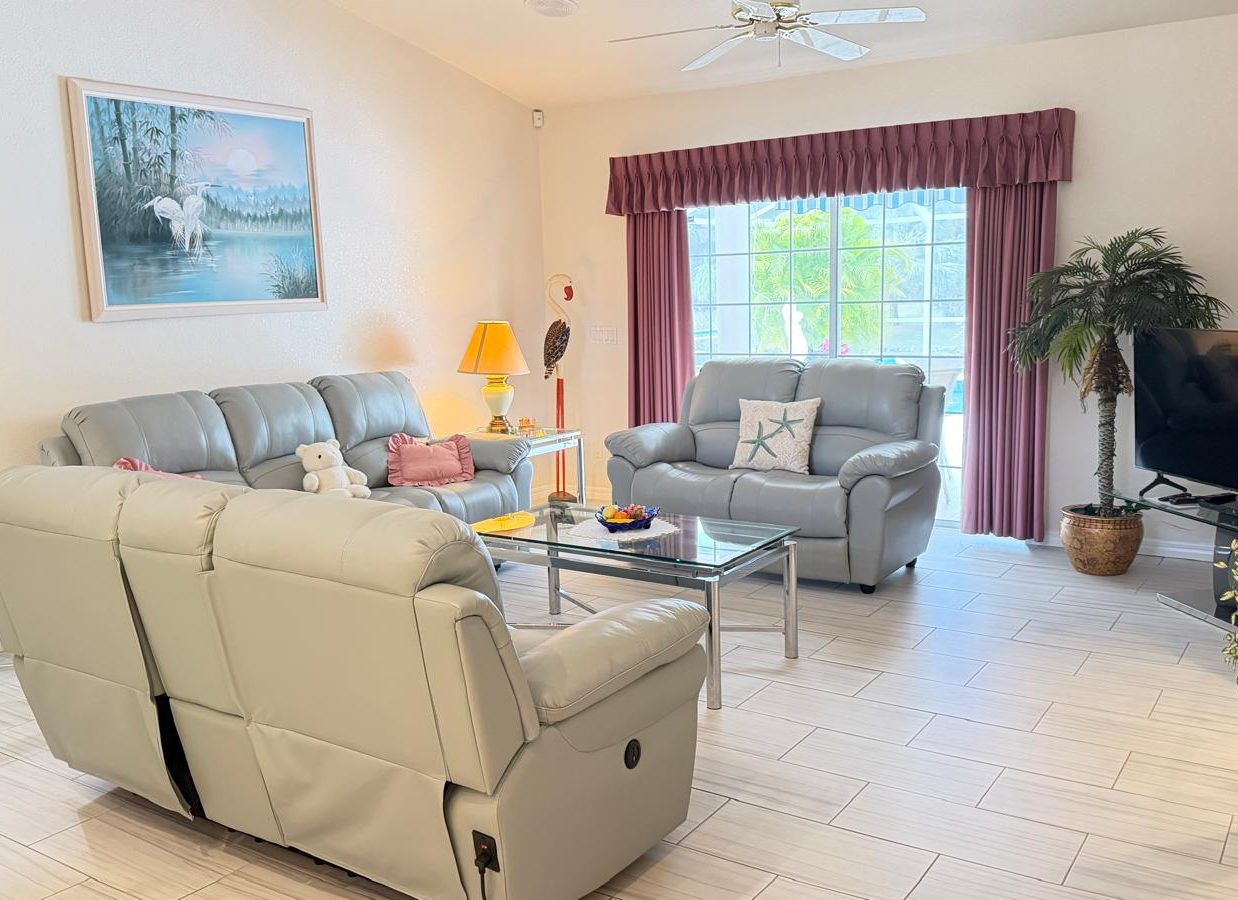 Wohnbereiche: Neben einem großzügigen Wohnzimmer mit Fernseher und Ledercouch bietet das Haus einen separaten Essbereich sowie einen gemütlichen Frühstückserker für den perfekten Start in den Tag.